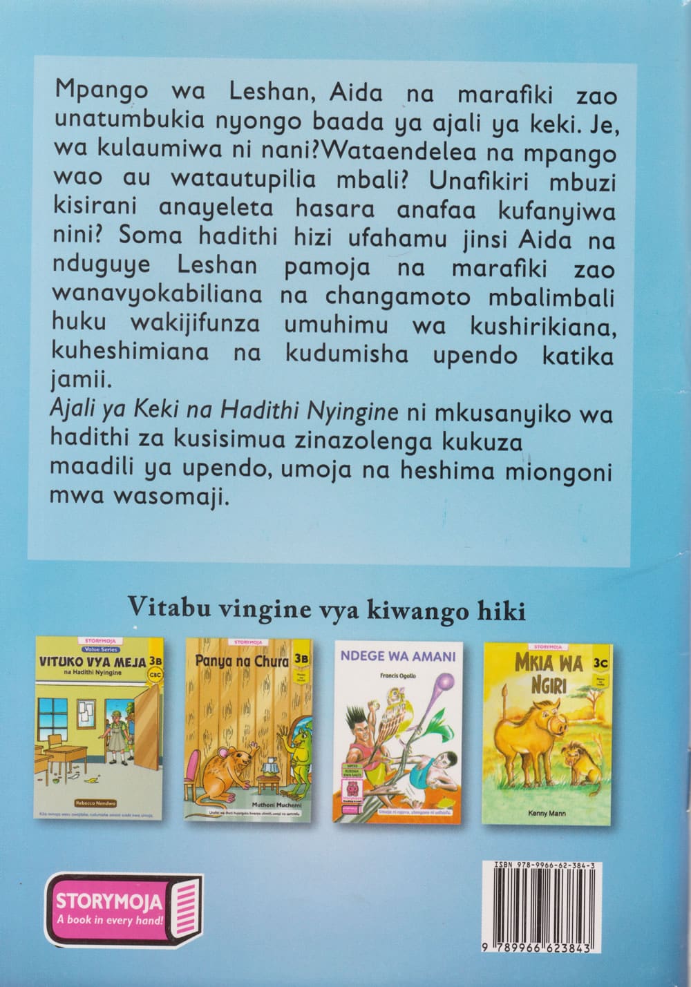 Mpango wa Leshan, Aida na marafiki zaounatumbukia nyongo baada ya qjali ya keki. Je, wa kulaumiwa ni nani?Wataendelea na mpango wao au watautupilia mbali? Unafikiri mbuzi kisirani anayeleta hasara anafaa kufanyiwa nini? Soma hadithi hizi ufahamu jinsi Aida na nduguye Leshan pamoja na marafiki zao wanavyokabiliana na changamoto mbalimbali huku wakijifunza umuhimu wa_ kushirikiana, kuheshimiana na kudumisha upendo katika jamii.