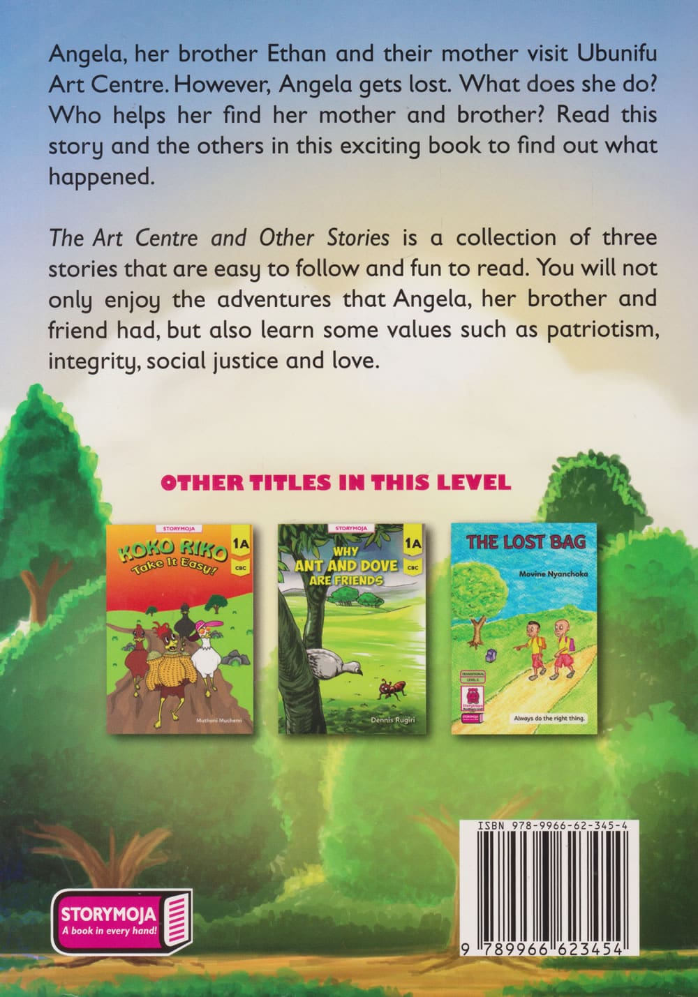 Angela, her brother Ethan and their mother visit Ubunifu Art Centre. However, Angela gets lost. What does she do? Who helps her find her mother and brother? Read this story and the others in this exciting book to find out what happened.