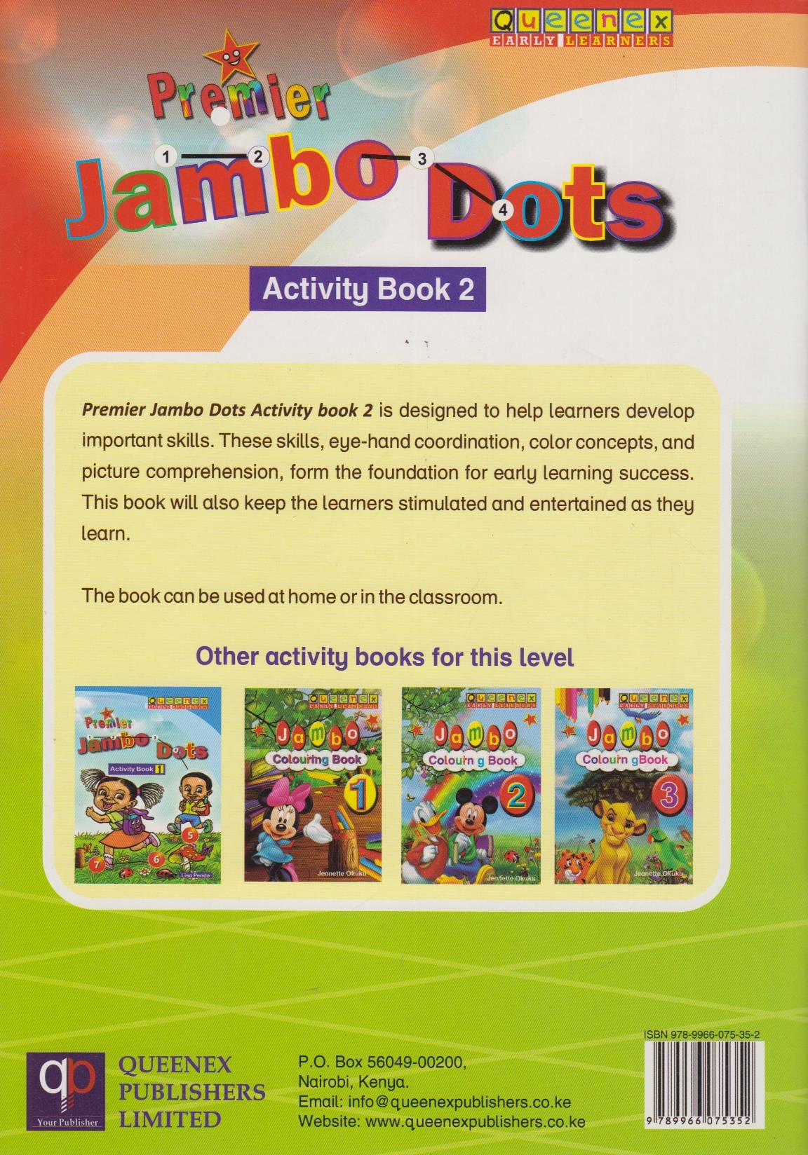 Premier Jambo Dots Activity book 2 is designed to help learners develop important skills. These skills, eye-hand coordination, color concepts, and picture comprehension, form the foundation for early learning success. This book will also keep the learners stimulated and entertained as they learn.?