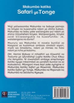 ?Maji yaliwasomba Makumba na babuye pamoja na kinyesi na kuwarusha ndani ya shimo kubwa Makumba na babu yake walianguka pul ndani ya shimo lilitosheheni kinyesi. Walipoanguka, kinyesi zaidi kiliwaangukia na kuwafunika. Je watatengana na dunia? Msururu wa Makumba ni novela bunilizi za kisayansi za kusisimua ambazo zinatol sayari mwili wa binadamu, ndani ya mimea na hata ndani ya ncha ya kalamu, Dirt. Hamisi Babusa ni mhadhiri wa Kiswahili na Taaluma ya ufundishaji Lugha Hatika Chuo Kikuu cha Kenyatta. Ni mwandishi ambaye amechangia katika nyuga mbalimbal/za uandishi bunilizi na za kiakademia. Miongoni mwa kazi zake nyingine ni Makumba katika safari ya Mawimbi, Malumba katika safari ya Tonge, Makumba na Majanabi na Makumba na Selidamu Nyeupe.