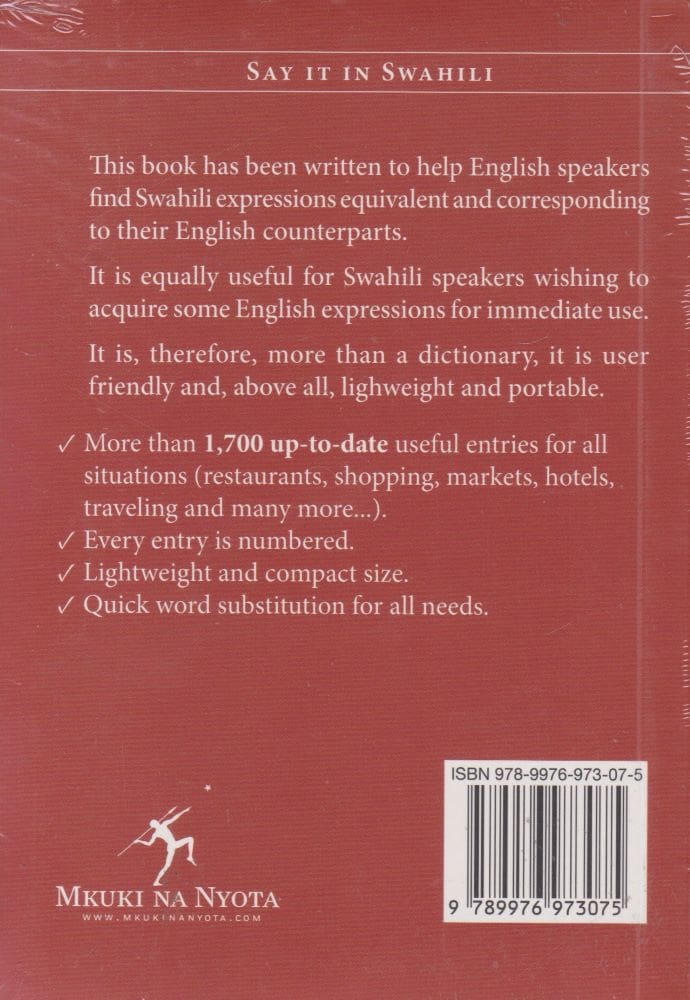 It is equally useful for swahili speakers wishing to acquire some English expressions for immediate use. It is, therefore, more than a dictionary, it is user friendly and, above all, lightweight and portable.